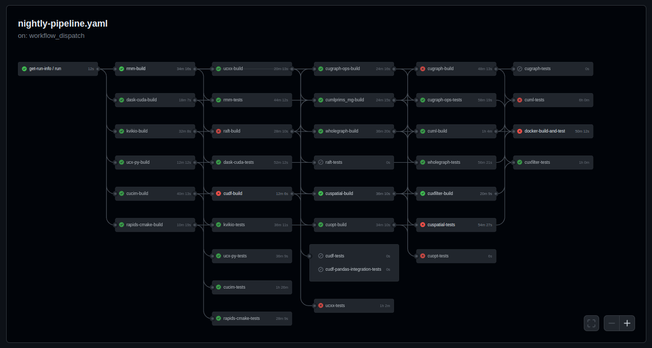 Since RAPIDS consists of a collection of libraries that depend on each other, it’s important that nightly builds and tests run in the correct order.